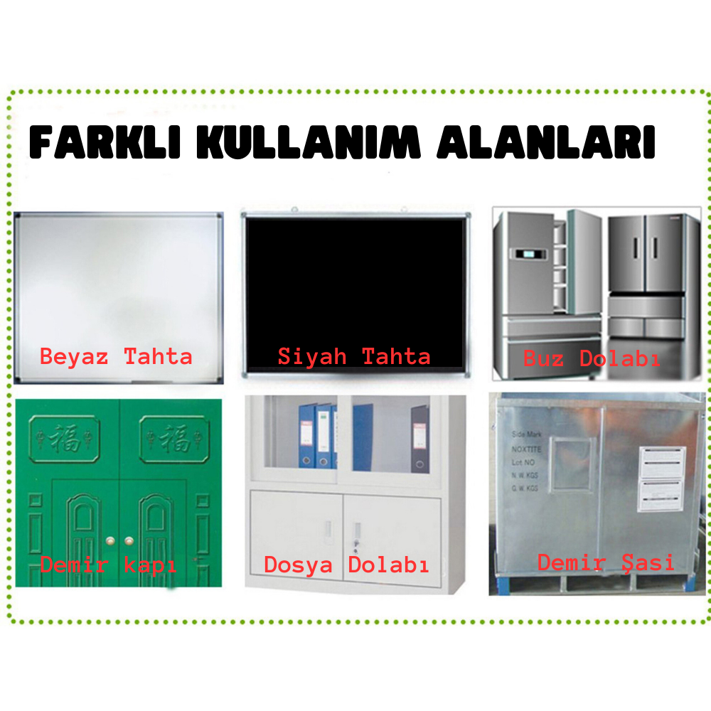 Buzdolabı üzerinde veya diğer metal yüzeylerde kullanılabilir.