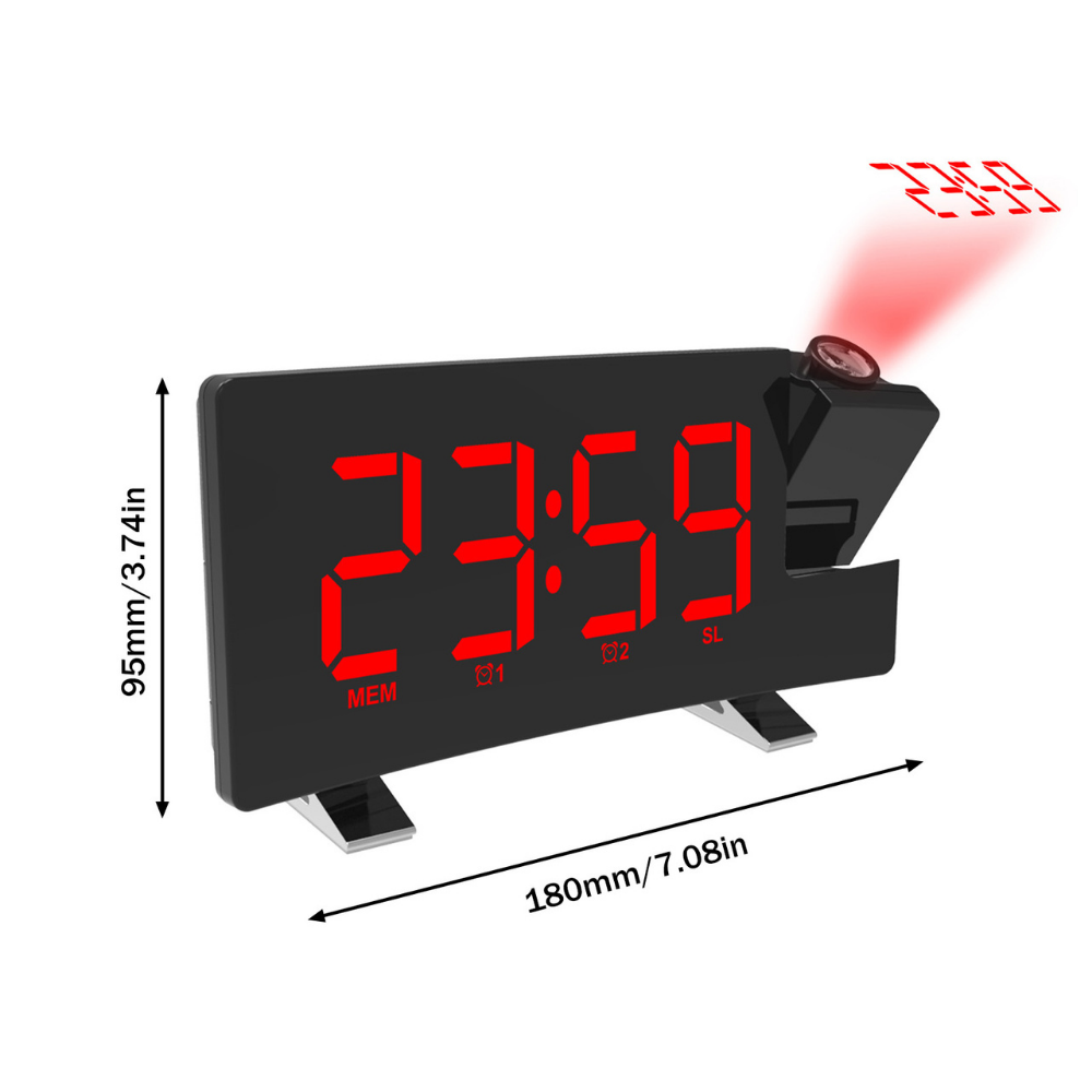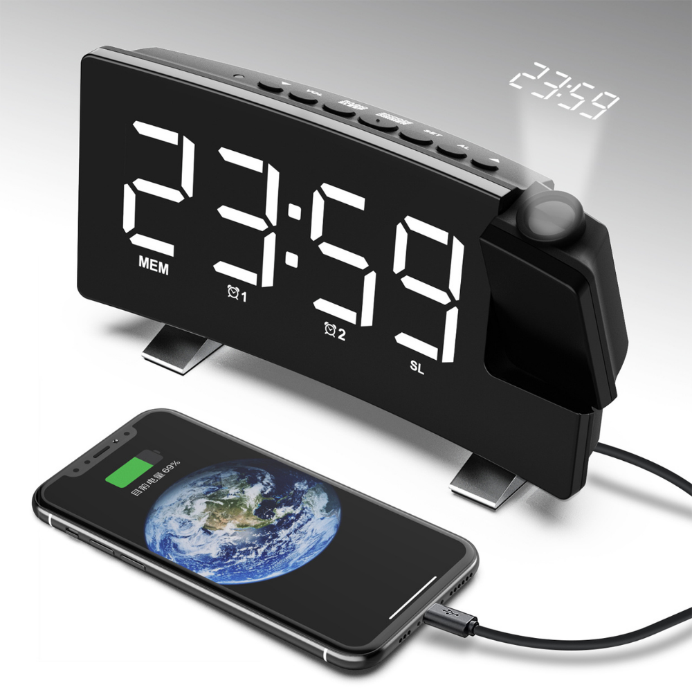 Projeksiyonlu 180° Ayarlanabilir Yatak Odası Saati Radyo ve Ayna Özellikli Şık Dekoratif Masa Saati