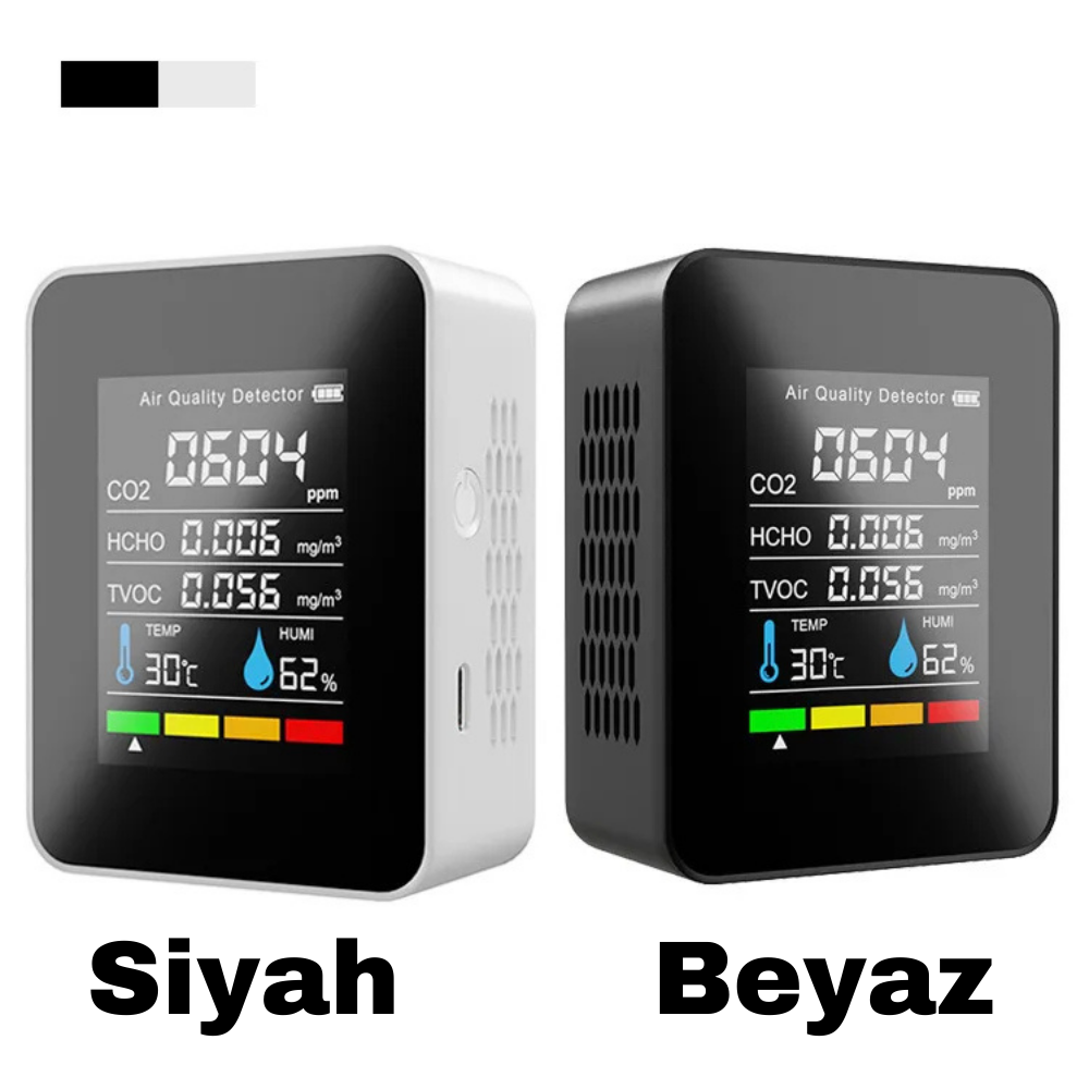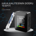 Çok fonksiyonlu Hava Dedektörü ; CO2 Karbondioksit Değeri , Dijital Sıcaklık, Nem Oranı, TVOC Değeri , HCHO Değerini anlık olarak ölçer.
