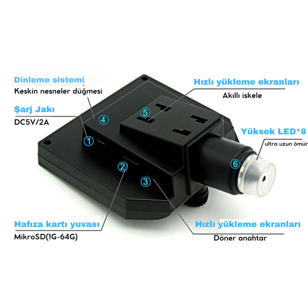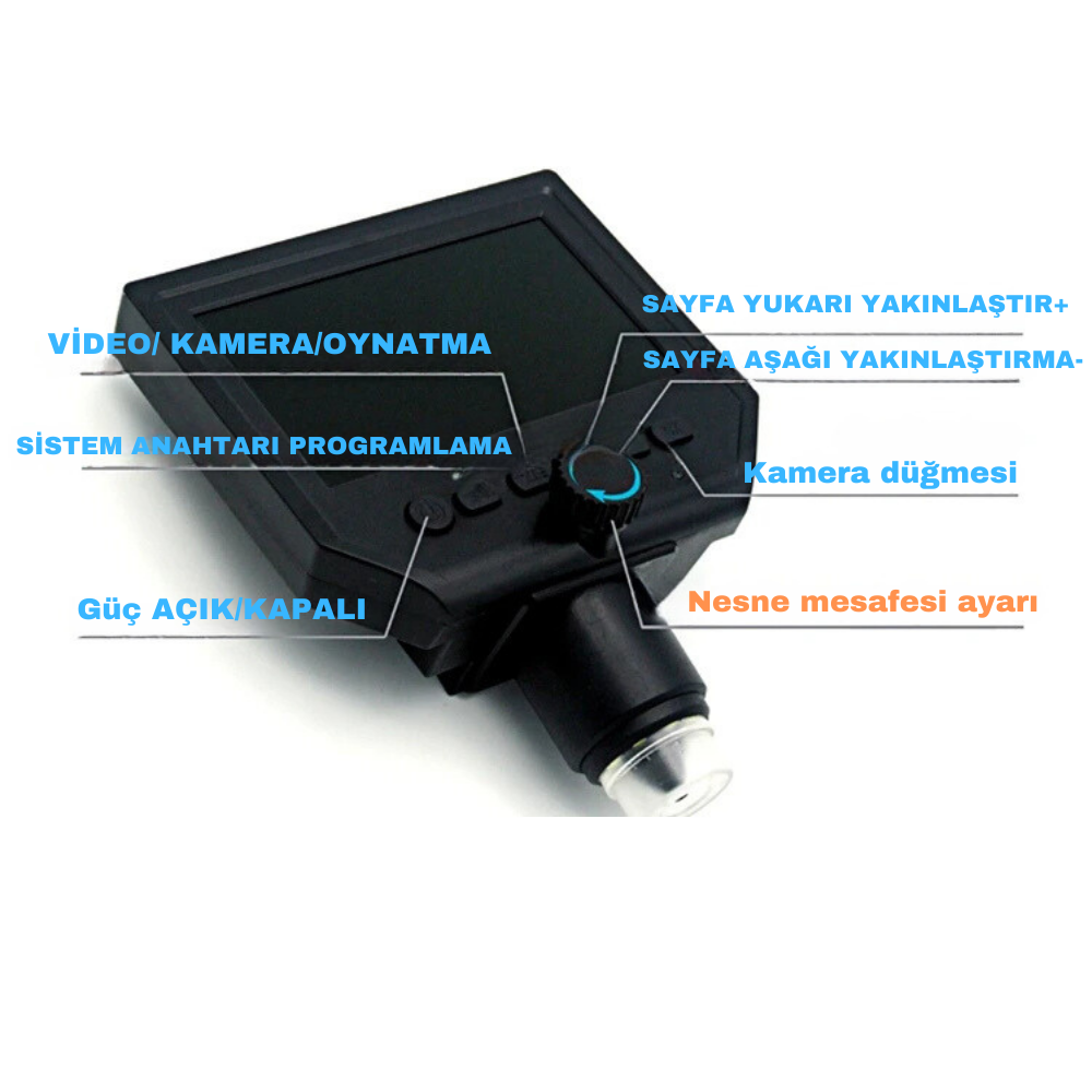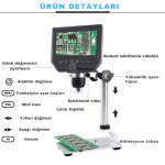 • Piksel: HD 3.6MP CCD · Ekran: 4.3 inç HD LCD ekran. · Büyütme: 1-600X sürekli büyütme sistemi. · Nesne mesafesi: 15mm – sonsuz · Dahili lityum pil 4 saatte dolar, 6 saat çalışma süresi vardır.