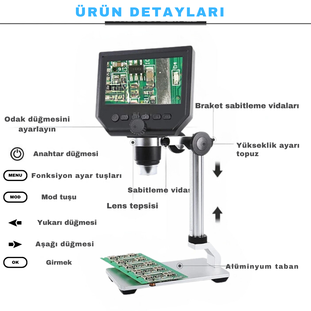 YeniTech- 600X Dijital 4.3 inç LCD Ekranlı HD USB Mikroskop