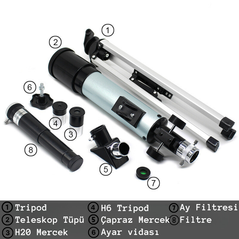 YeniTech- 90X Yakınlaştırma Ay Merkür Dünya Teleskop Eğitici Gözetleme Teleskopu