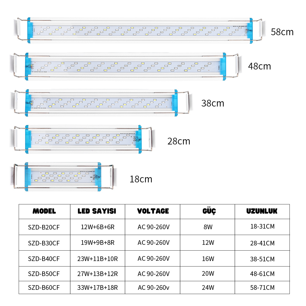 1. Süper parlak, enerji verimli ve uzun ömürlü led’ler, sucul bitkilerin ve balık bitkilerinin sağlıklı, canlı büyümesini teşvik eder, aquaşe’niz için parlak aydınlatma üretir