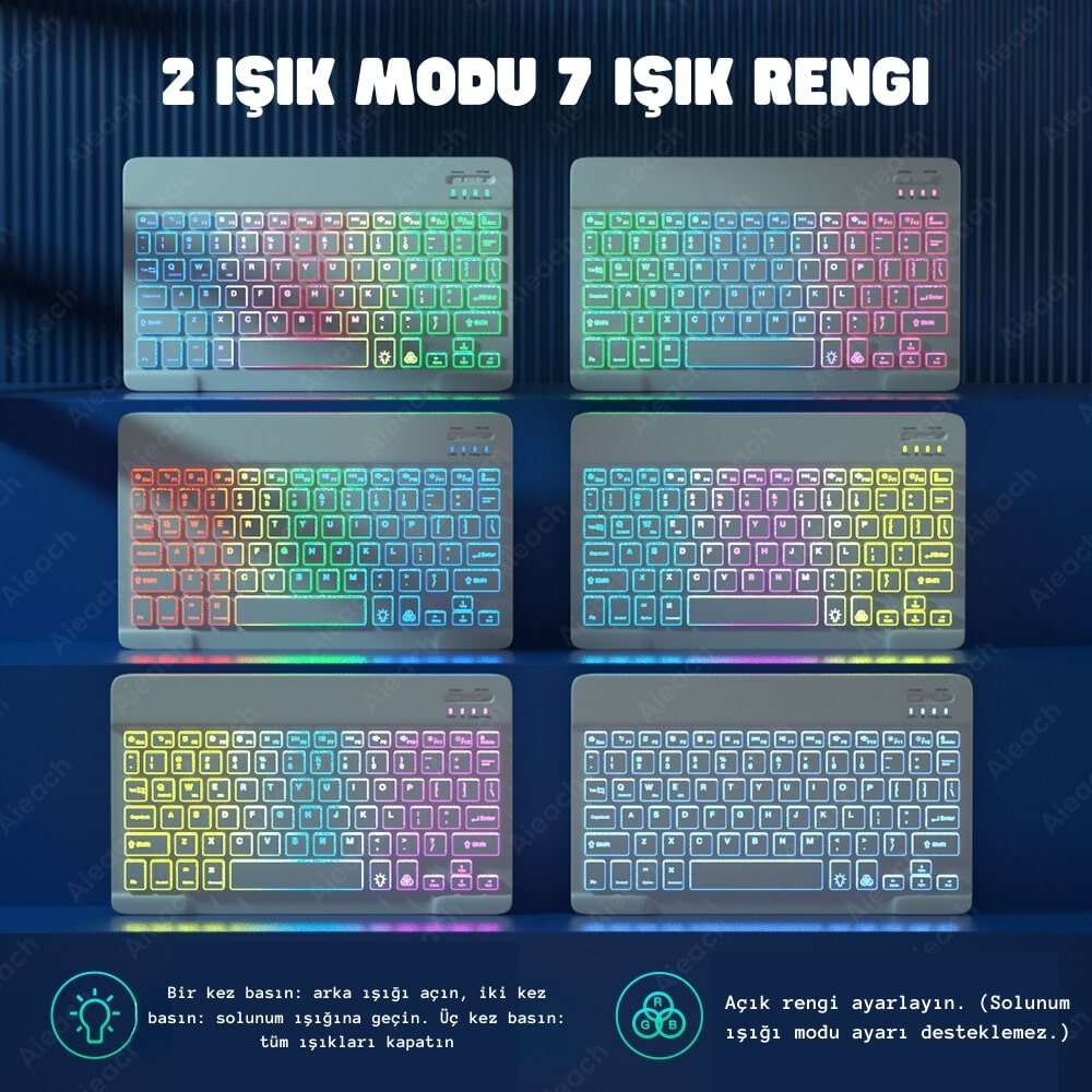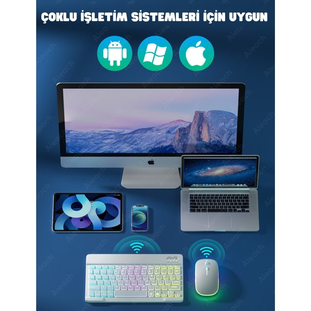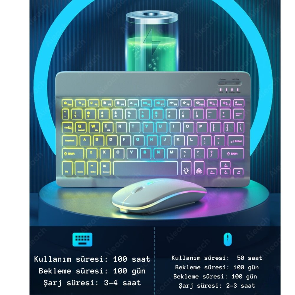 YeniTech- Bluetooth Aydınlatmalı Klavye Mouse Tablet Telefon Android iOS Windows Fare Klavye iPad