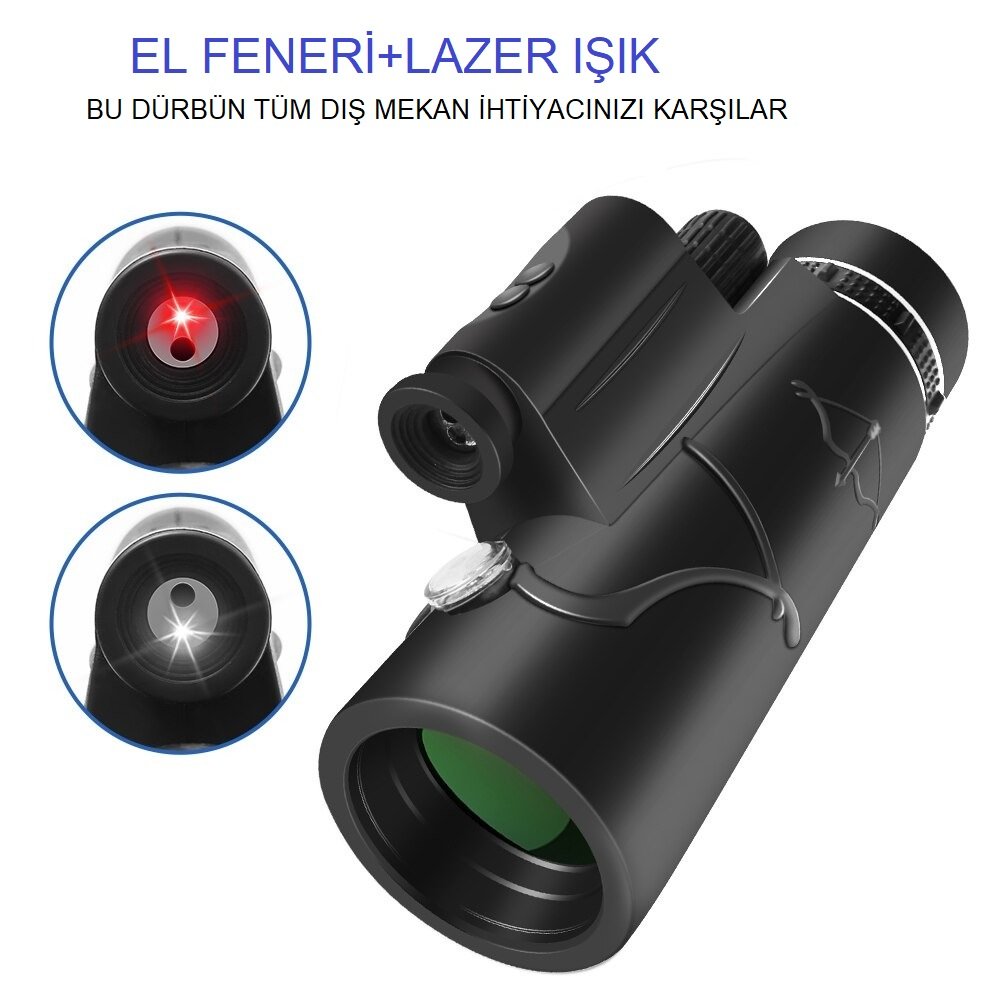 YeniTech Dürbün 50×60 Zoom Lazer Işıklı El Fenerli Hd Dürbün Teleskop Dürbün