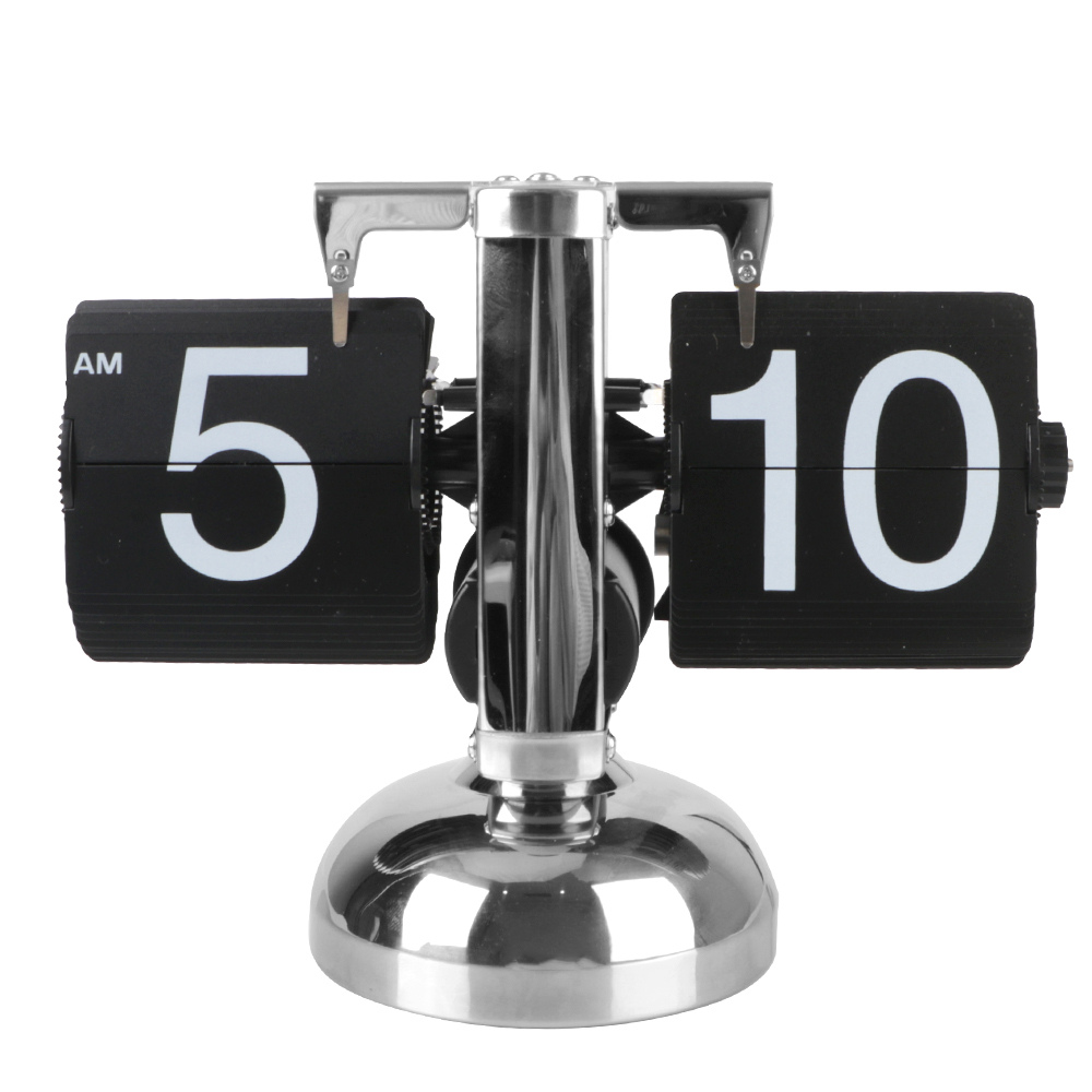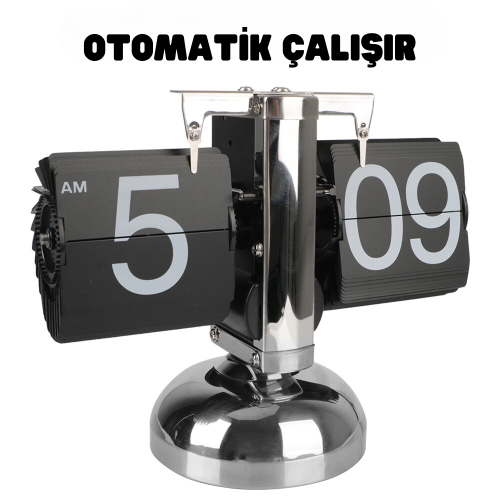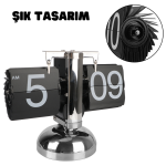 YeniTech-Lüks Masaüstü Otomatik Çevirme Dijital Saat Kuvars Pilli Saat Ev Dekorları Retro Flip Çevirme İç Dişli Saat