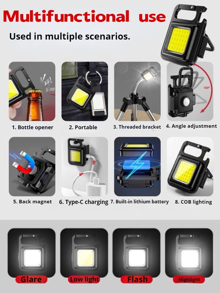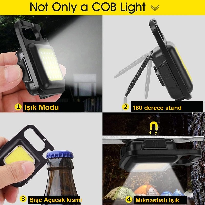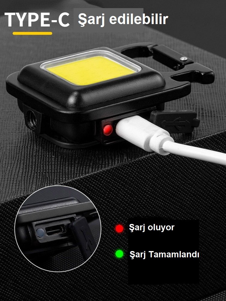 YeniTech-Mini Led El Feneri Çalışma Işığı Şarjlı Anahtarlıklı Kapak Açacaklı Kamp Lambası