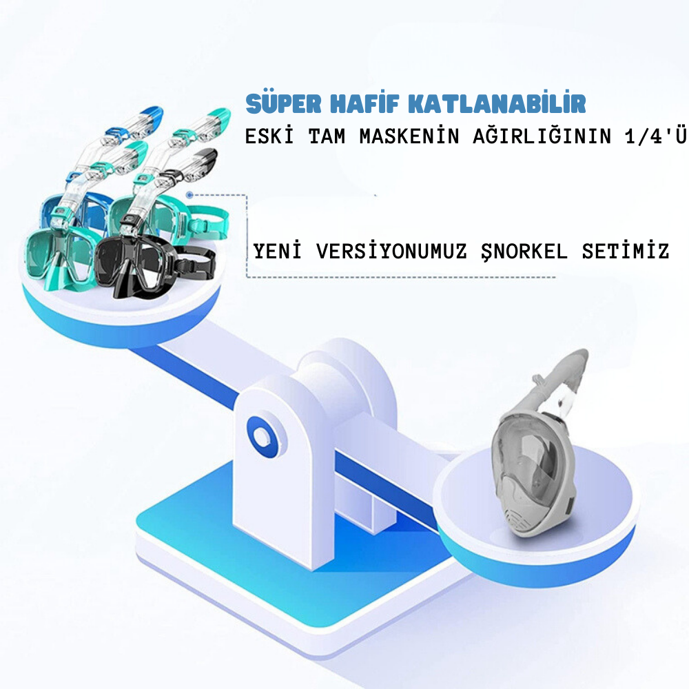 [Rahat ve hafif] tam yüz tipi ile karşılaştırıldığında, şnorkel dişli yaz aylarında tıkalı hissettirecek ve ağırlığı eski tam yüz şnorkel maskenin sadece dörtte biri. Şnorkel seti, en rahat uyum için ayarlamanıza izin veren ayarlanabilir kayışlarla birlikte gelir.