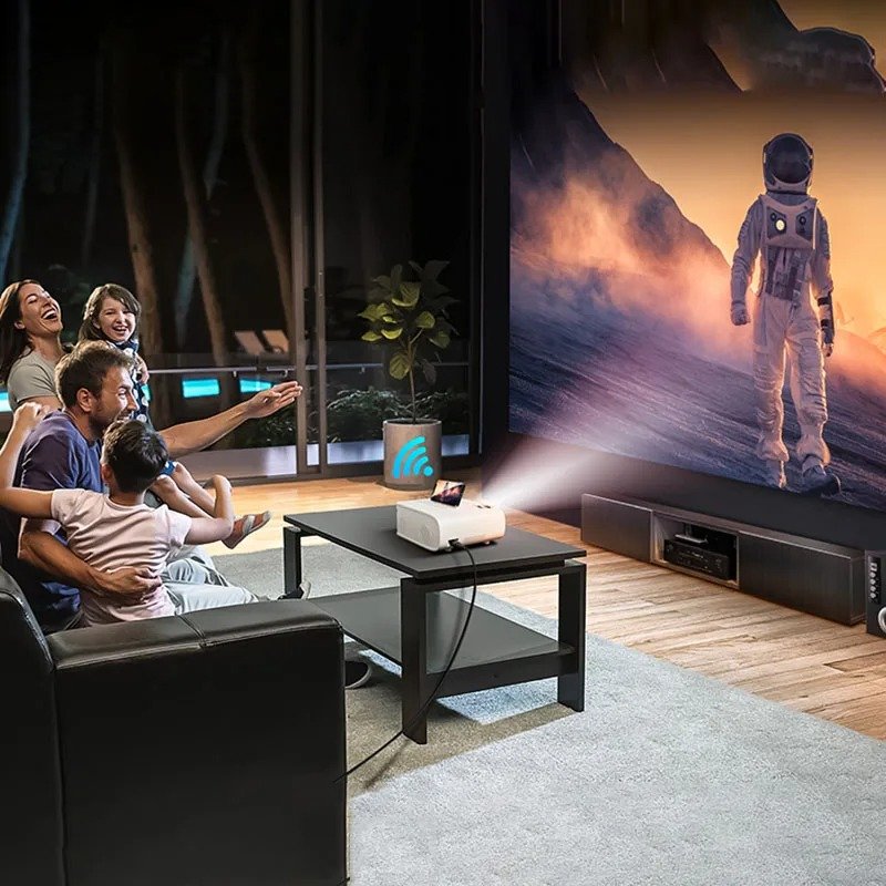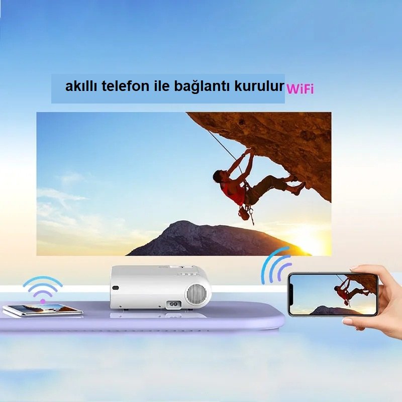 YeniTech Taşınabilir Mini Projektör Akıllı Full HD Projeksiyon Ev Ofis İçin Çok Fonksiyonlu Kablosuz Video Projektör